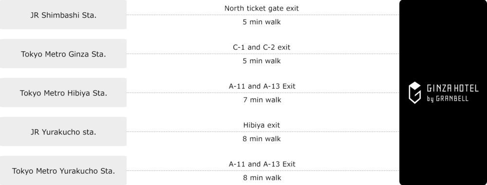 ・5 minutes walk from Tokyo Metro Ginza Station (Exit C-1/C-2)
