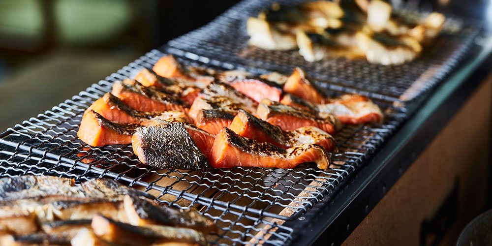 Enjoy a variety of toppings, including daily changing plums and salmon dried small sardines, as well as shredded seaweed and bubu arare rice crackers. Enjoy with our special Japanese-style broth with the aroma of roasted green tea.