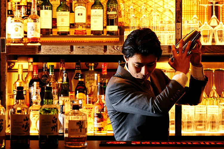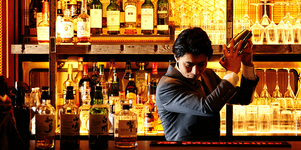 The bar "KONJIKI" is located in the semi-basement entrance space. You can quietly sip your drink at the counter or relax at a table. Please enjoy your time however you like.
