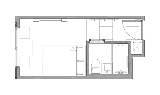 There is a small garden outside the window, and the artistic lighting and the scenery of a single bamboo create a Japanese atmosphere and help you relax after your travels.