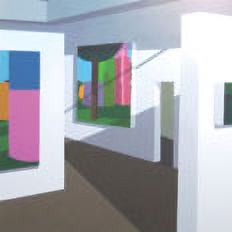 He creates a virtual space on his PC, stands inside it, and draws a snapshot of the scenery.